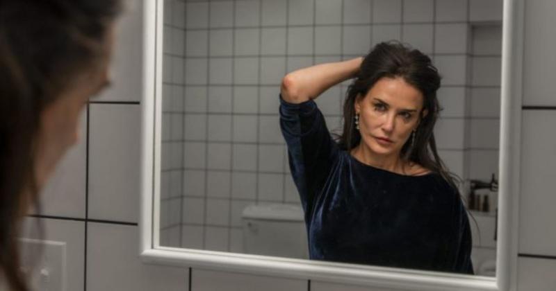 Para todos esses lados aparecerem bem, Demi Moore abandona qualquer vaidade e entrega uma atuação vital para o filme. Enquanto o roteiro não é sempre tão claro sobre as intenções de Elizabeth, Moore compensa com uma atuação emocionalmente carregada, que vai do abatimento à explosão, exibindo a dor de uma mulher cuja identidade foi definida por sua aparência, e que agora se vê sem um propósito de vida.