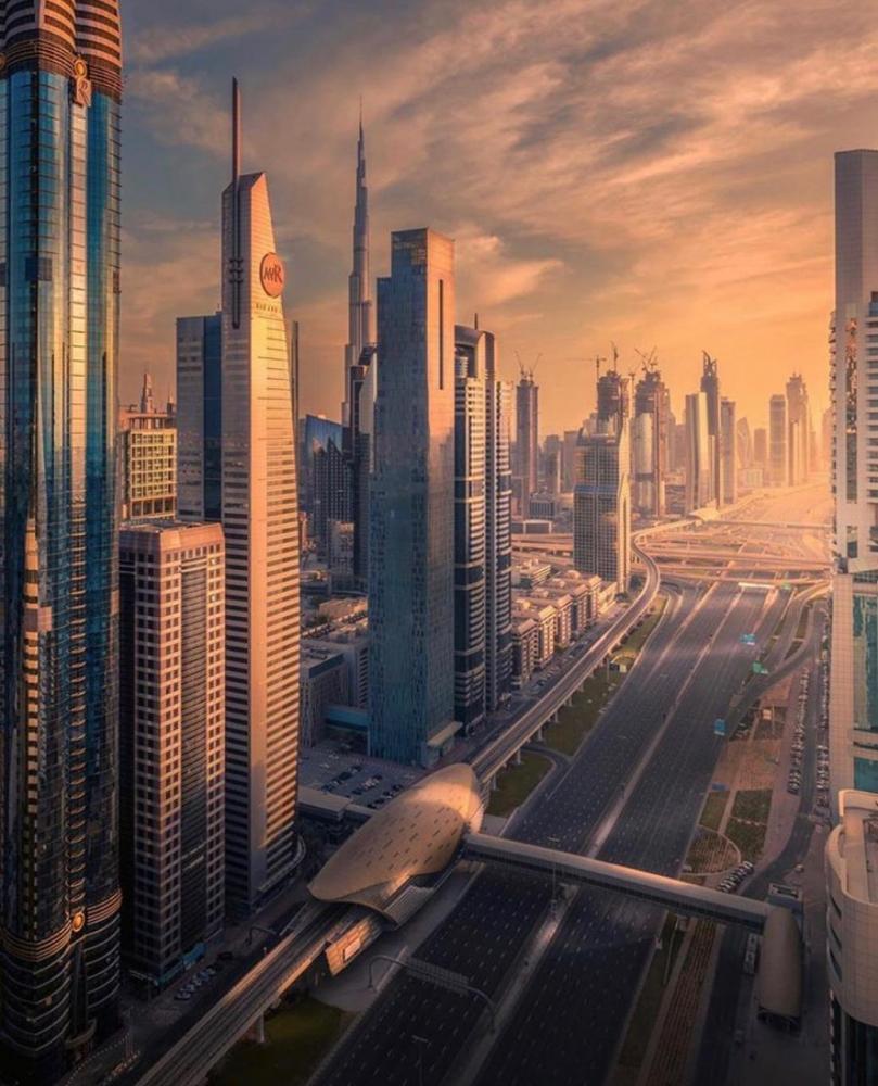A Sheikh Zeyed Road, em Dubai, deserta, na quarentena