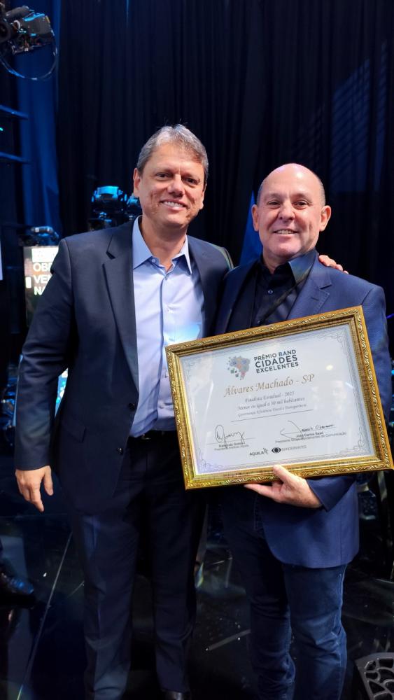 Na noite de terça-feira (14), em São Paulo, o município de Álvares Machado foi destaque na cerimônia estadual do Prêmio Band Cidades Excelentes, ao ser reconhecido no primeiro pilar de avaliação: governança, eficiência fiscal e transparência. O município competiu com outras duas cidades de porte similar — Pariquera-Açu e Cajati — todas com população menor ou igual a 30 mil habitantes.