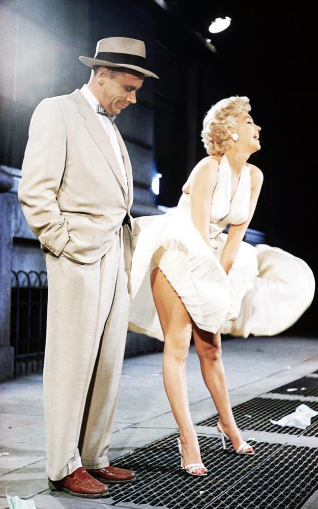 Uma das mais icônicas cenas da história do cinema é a imagem de Marilyn Monroe de vestido branco plissado passando sobre o respirador do metrô e levando uma rajada de vento que levanta sua saia, justamente neste filme: “O Pecado Mora ao lado” (The Seven-Year Itch), dirigido por Billy Wilder em 1955. O título original refere-se à comichão em trair que atinge os homens após os sete anos de casamento. Na história, um típico homem comum americano (Tom Ewell) passa o verão sozinho em seu apartamento enquanto a esposa (Evelyn Keys) vai visitar a família no interior, e ele se encanta com a nova vizinha loira e sedutora. Enquanto eles estabelecem uma relação progressiva, amigável por parte da loira, e delirante por parte dele, ele vai se assombrando com ideias de infidelidade que o deixam atormentado de forma cômica. Um dos maiores sucessos dos estúdios 20th. Century-Fox e da carreira da estrela Marilyn Monroe no auge da beleza aos 29 anos.
