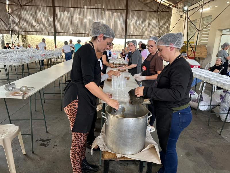 Cerca de 30 a 40 voluntários ajudaram na preparação do prato