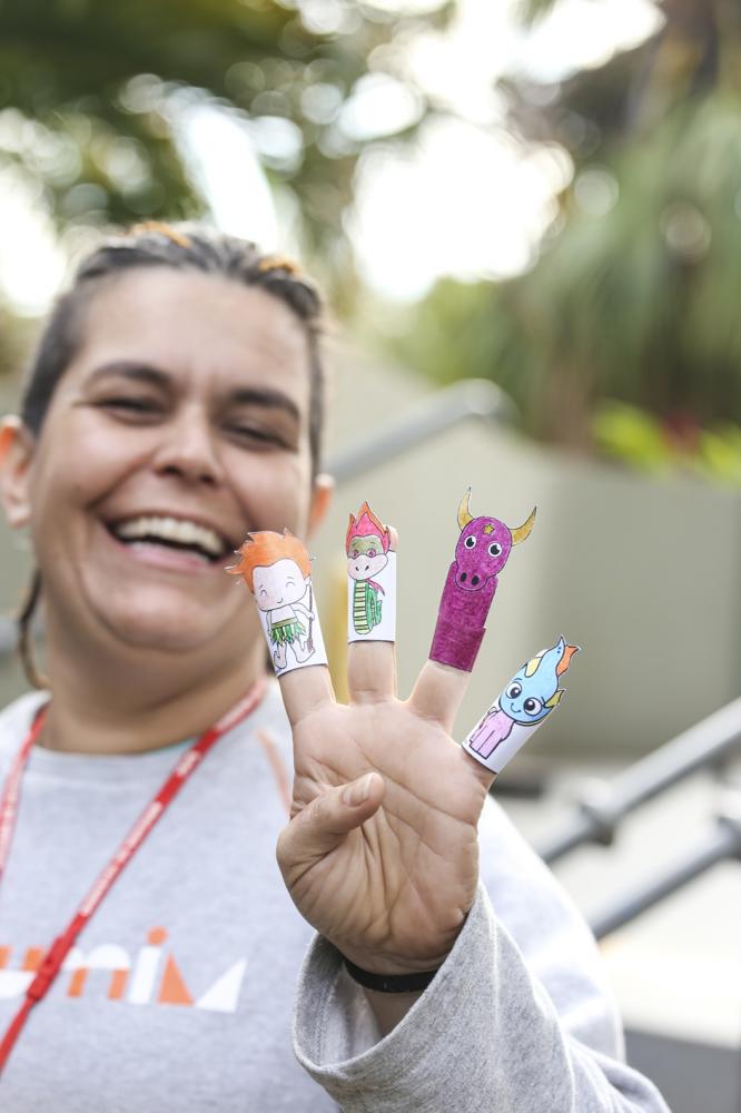 Para os pequenos a partir de 6 anos, também acontece a oficina Construção de Dedoches, em que cada participante confecciona seus próprios personagens para contar histórias.