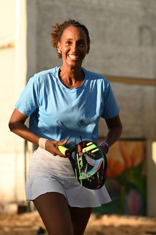 Dani, coordenadora do beach tennis, comemora obras das quadras