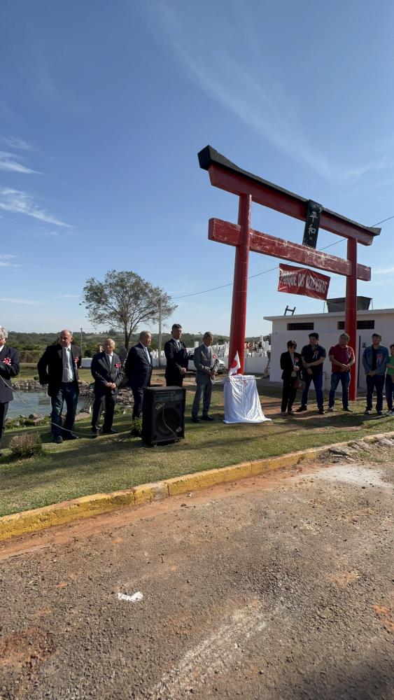 Inauguração do Torii (portal), doado pela família Funada, integrou a programação