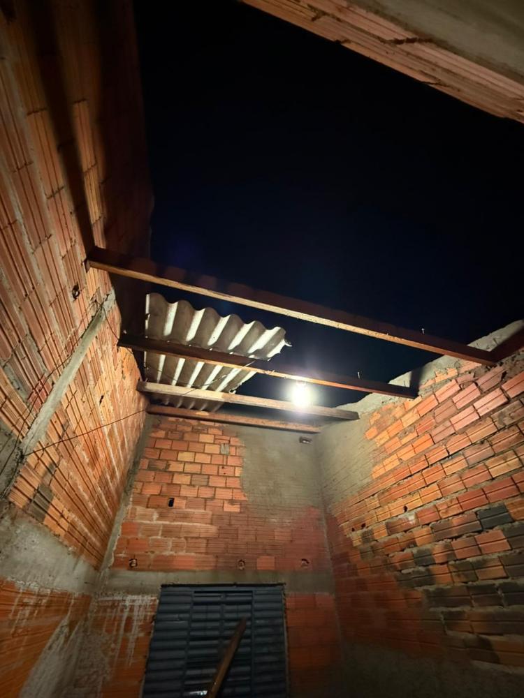 Residência danificada após passagem do landspout, tornado de menor intensidade, em Teodoro Sampaio