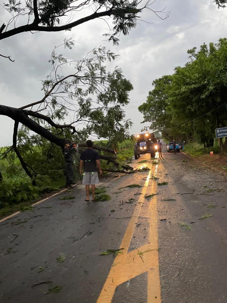 Uma ação rápida e conjunta foi necessária para normalizar o tráfego na Estrada Municipal Martins Pena, via que liga Dracena a Ouro Verde, após o temporal que atingiu a região nesta quarta-feira. Nas proximidades do distrito dracensense de Jamaica, três árvores de grande porte, atingidas pela forte ventania e pela chuva, caíram sobre a pista, interditando totalmente a circulação de veículos.
