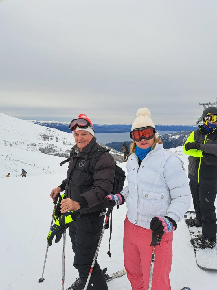 Dorisa Fontolan Medeiros e Marcos Medeiros escolheram Bariloche, na Argentina, como destino para desfrutar sua temporada de férias. Com as montanhas cobertas de neve, Dorisa e Marcos encontraram condições perfeitas para explorar uma vasta área esquiável. Bariloche é conhecida por suas excelentes pistas de esqui, que variam em níveis de dificuldade. Tanto para iniciantes quanto para esquiadores experientes, a região oferece opções desafiadoras e estimulantes, garantindo uma experiência incrível para os amantes do esqui. Dorisa e Marcos também tiveram a oportunidade de desfrutar das belas paisagens naturais ao redor. A cidade oferece vistas deslumbrantes dos lagos, bosques e montanhas.
