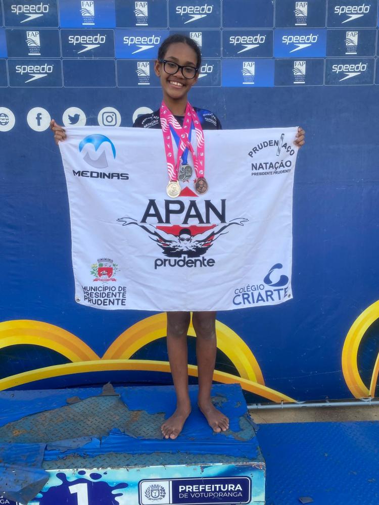 A equipe de natação Apan/Criarte/Semepp, de Presidente Prudente, retornou à cidade, depois de uma competição disputadíssima em Votuporanga (SP), com 50 medalhas conquistadas e três atletas classificadas para a Seleção da 4ª Região, que disputará nos dias 10, 11 e 12 de outubro, o tradicional Troféu Kim Mollo de Natação, em Mococa (SP). São elas: Eliza Christofano, Eliza Magotti e Rafaela Ambrósio.