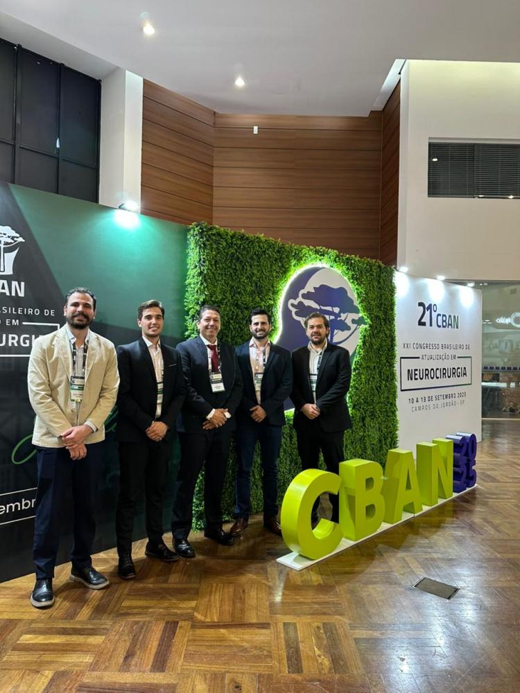 DR. RODRIGO FERRARI NAUFAL (CENTRO), ENTRE COLEGAS, NO CONGRESSO BRASILEIRO DE ATUALIZAÇÃO EM NEUROCIRURGIA