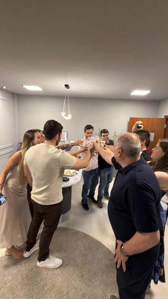CONVIDADOS BRINDAM COM BRUNO DOCUSSE NA INAUGURAÇÃO DE SUA NOVA CLÍNICA