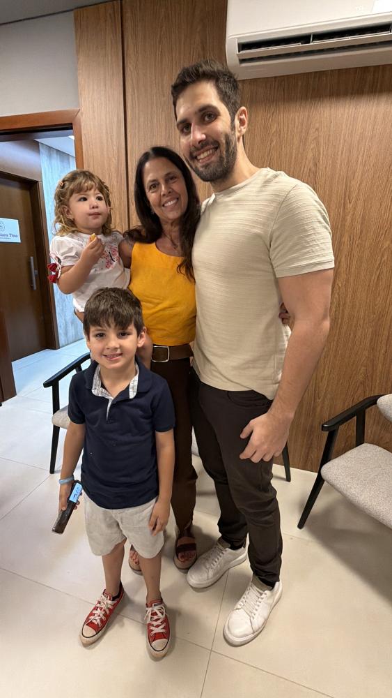 BRUNO DOCUSSE COM A MÃE, CLAUDIA DOCUSSE, TAMBÉM FISIOTERAPEUTA, ESPECIALISTA EM PILATES, E OS SOBRINHOS