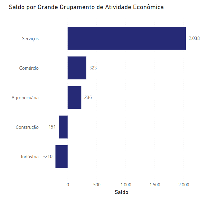 No ano passado, o setor de serviços acumulou a maior parte dos novos colaboradores: 2.038 do total, saldo entre 17.287 admitidos e 15.249 demitidos. Na sequência vem o comércio, com 323 vagas preenchidas – 10.785 contratados e 10.462 desligados. A agropecuária foi a terceira atividade com resultado positivo, este de 236 trabalhadores – 836 admissões e 600 desligamentos.