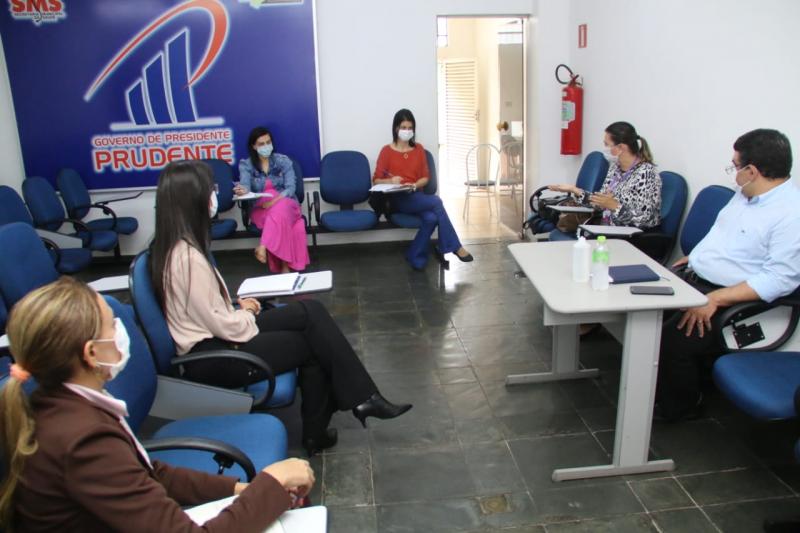 Participaram da reunião: Delton Ferraz, secretário municipal; Glauco Bazzo, supervisor médico; Dayara Tomazini, médica; e as enfermeiras apoiadoras e supervisoras das ESF’s de Prudente, Kátia Regina Sobires, Dilene Lourenço Monteiro Guedes, Fernanda Trevisan do Prado e Vanessa Gomes da Barra.
