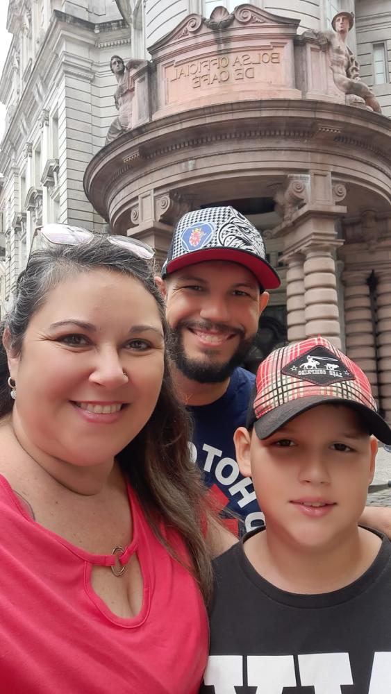 A fotógrafa Renata Hess com o marido Sérgio Hess e o filho Pedro, de férias em Santos