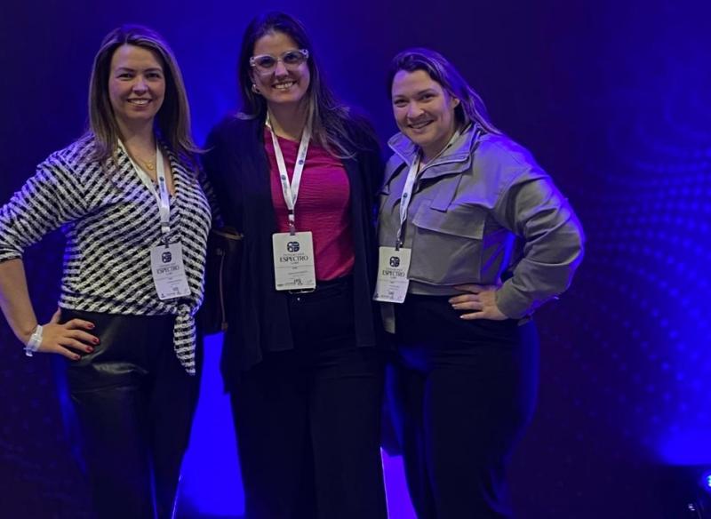 A fisioterapeuta Vanessa Macorini, diretora da Clínica Neurofisio, e as terapeutas Fernanda Babora e Thais Werner, participaram do Congresso Espectro 2025