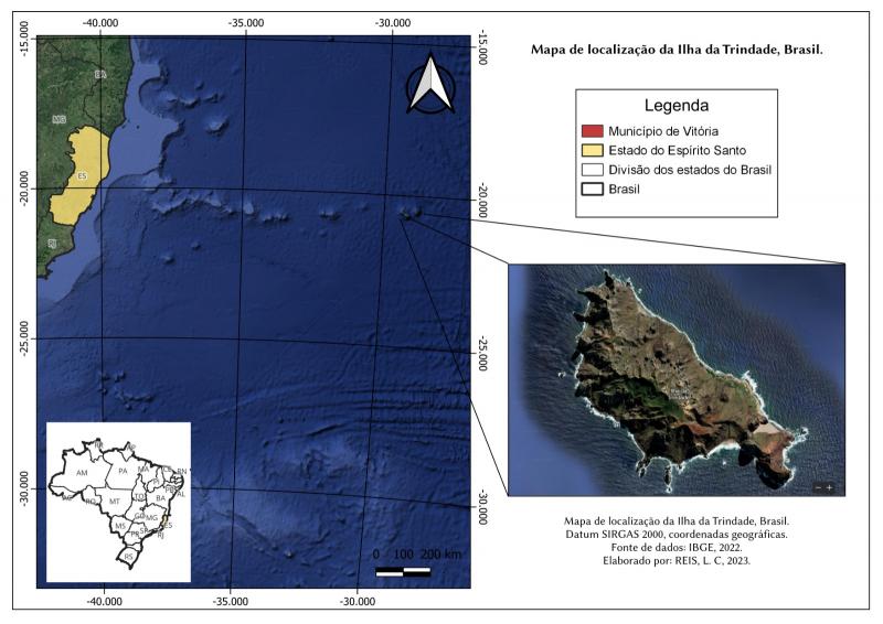 Foto: Cedida - Mapa de localização da Ilha de Trindade, onde foram coletadas as amostras da pesquisa