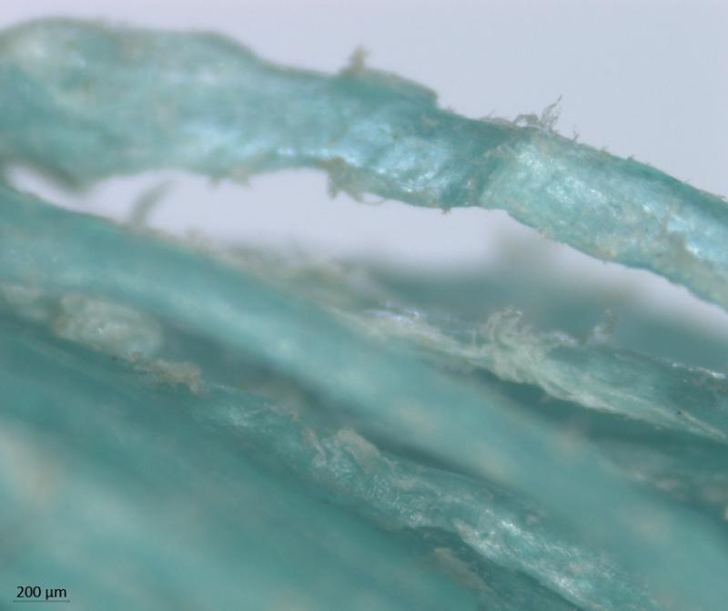 Foto: Cedida - Imagem microscópica de fragmentos de cordas de rede de pesca, que liberam microplásticos e microfibras