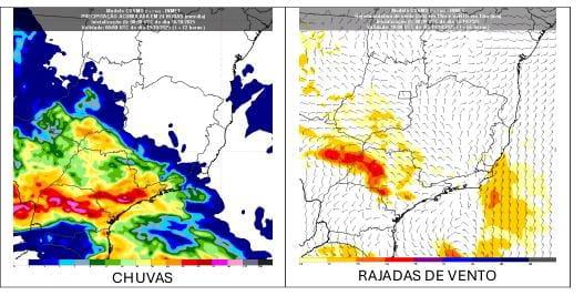 Modelos indicam previsões para acumulados em torno de 40 mm e ventos acima de 40 km/h neste sábado