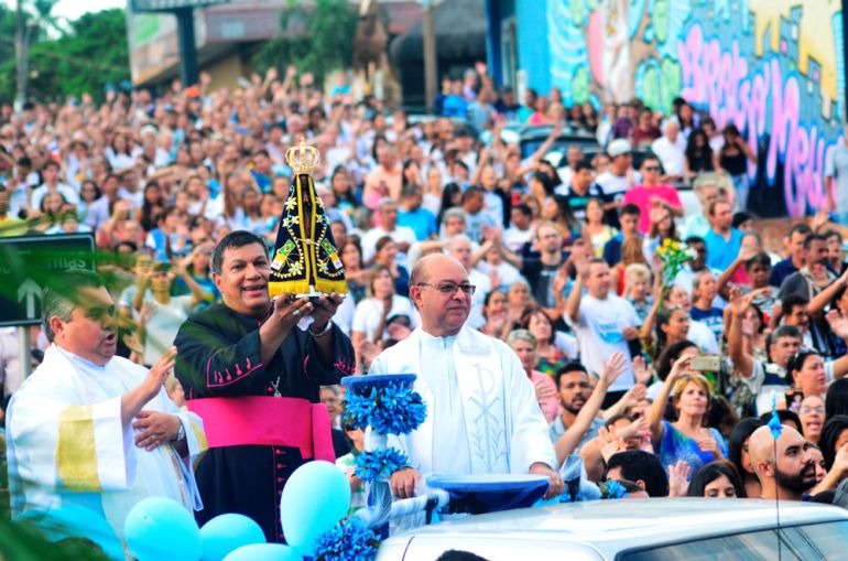Nesta quarta-feira, é lembrado o Dia de Nossa Senhora Aparecida, a santa padroeira do Brasil. E como todos os anos, várias missas serão celebradas pelos párocos no santuário que leva o nome da santa, por seus párocos, o reitor Odair Calezulato e Roberto de Paula Silvério, vigário paroquial, na Vila Marcondes, em Presidente Prudente. A primeira será às 7h e a última, missa campal, às 17h30, celebrada por dom Benedito Gonçalves dos Santos, o bispo diocesano, seguida da procissão luminosa pelas ruas no entorno do santuário.
