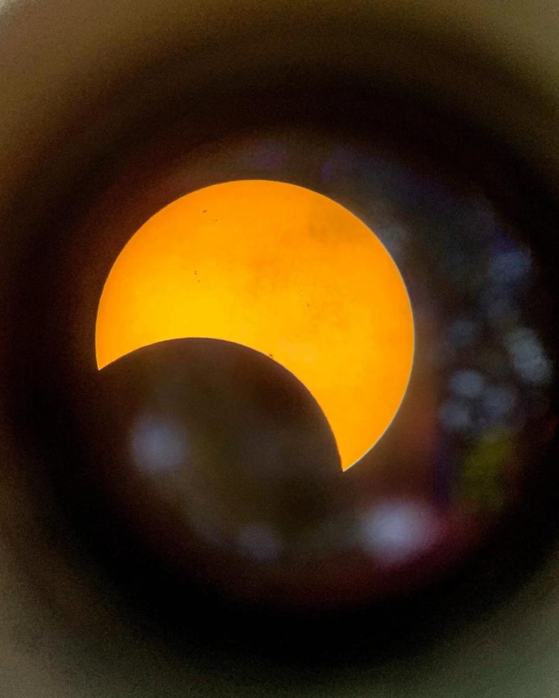 Na tarde deste sábado, por volta das 17h, o fotógrafo Roberto Mancuzo fez o registro do eclipse parcial do sol durante a tarde de observação do fenômeno no campus da FCT/Unesp (Faculdade de Ciências e Tecnologia da Universidade Estadual Paulista), em Presidente Prudente.