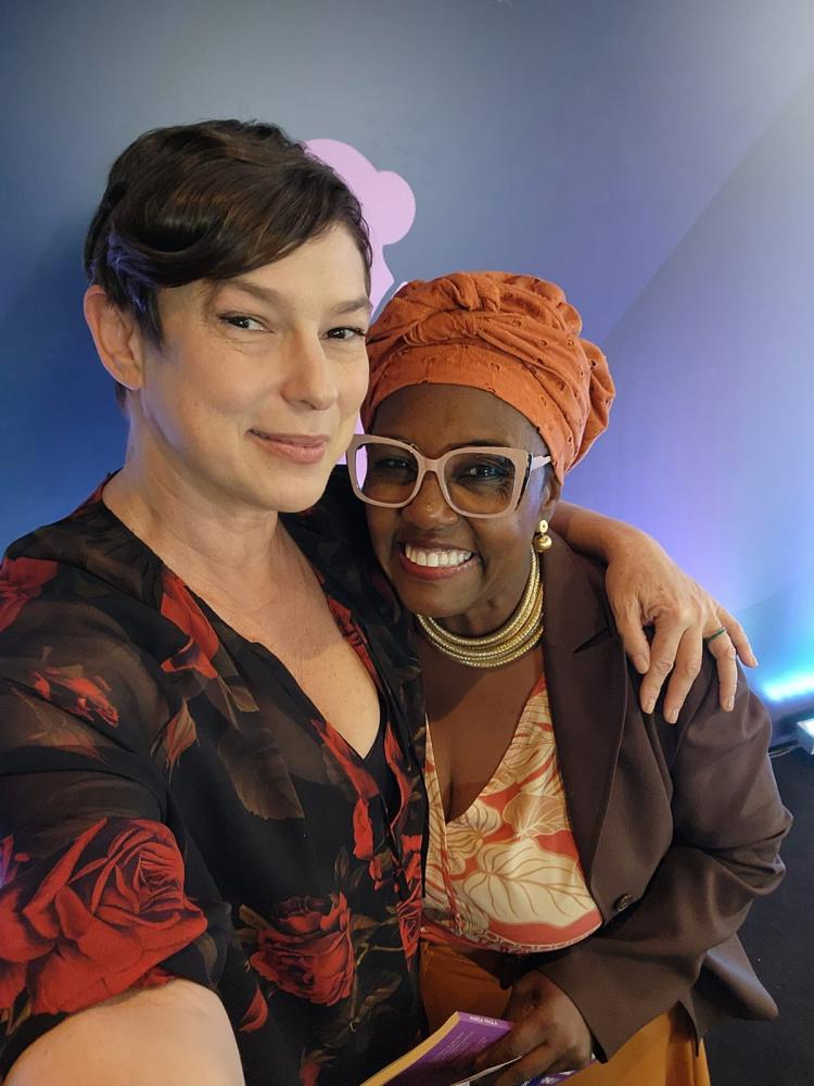 DANEGA E A ATRIZ MARIA PAULA DURANTE O FÓRUM DE DISCUSSÃO SOBRE LIDERANÇAS HUMANIZADAS