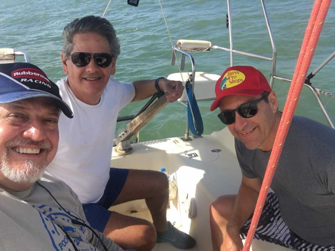 AMIGOS José Pissuti, Luis Antonio Dassan dos Santos e Antonio Rosas Junior, velejam no Grande Lago em Presidente Epitácio