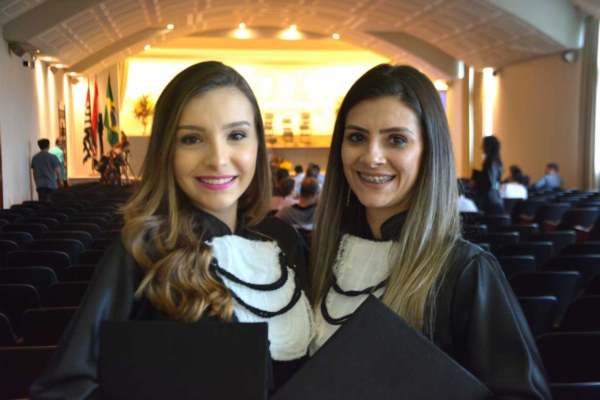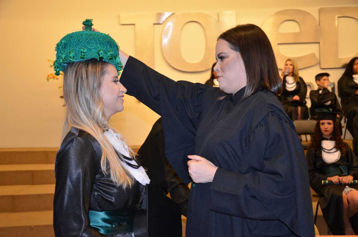 Coordenadora Juliene Aglio Parrão confere o grau acadêmico a aluna Flaviani Carvalho