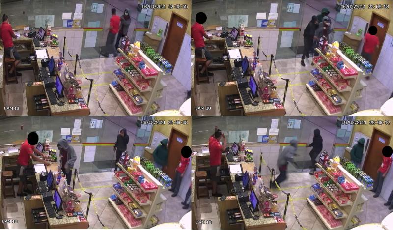 A ação foi gravada pelo circuito de monitoramento interno do estabelecimento. Na imagem, é possível perceber a agilidade dos criminosos, que em questão de segundos conseguiram subtrair cerca de R$ 1 mil do caixa.
