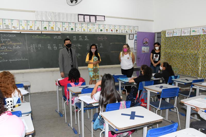 Na ocasião, a secretária municipal de Educação, Joana D’arc Patrício do Nascimento, a diretora Gisele Salomão e a equipe pedagógica participaram de um bate-papo com o promotor, no qual falaram sobre o trabalho pedagógico e estrutural desenvolvido pelo município nesta proposta de retomada pós-pandemia.