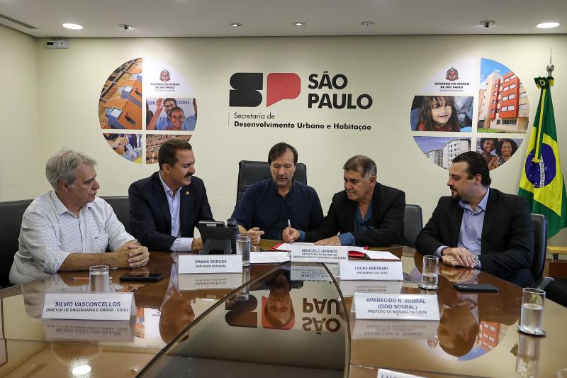 A cerimônia ocorreu na sede da secretaria, na capital paulista, e contou com a presença do diretor de Engenharia e Obras da CDHU, Silvio Vasconcellos, do prefeito de Marabá Paulista, Cido Sobral (MDB), e do prefeito de Pirapozinho, Lucas Pavani (PSD).