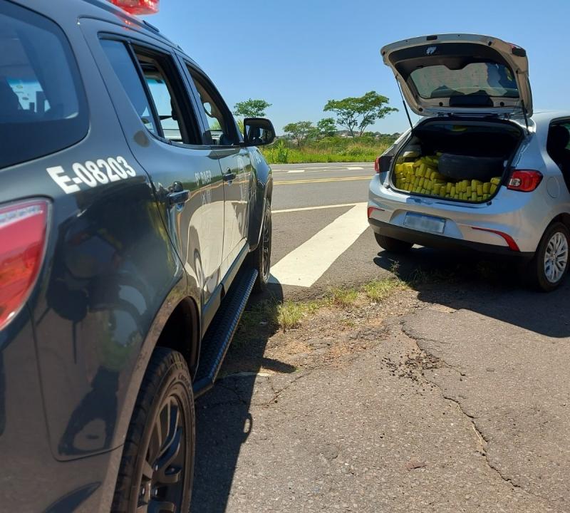 Após um breve acompanhamento, o veículo foi abordado e, durante busca no interior do carro, os policiais localizaram o carregamento de maconha. A quantidade apreendida totalizou 432,6 kg.