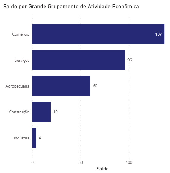 A agropecuária também teve resultado favorável no período, com 60 novos colaboradores, resultado de 85 admitidos e 25 desligados. Na construção, 19 novas carteiras assinadas: 149 contratações e 130 demissões. Por fim, a indústria seguiu em estabilidade, com quatro novos trabalhadores, saldo de 356 admissões e 352 desligamentos.