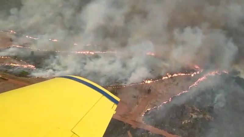 Viaturas de apoio e aeronaves auxiliam no combate ao incêndio