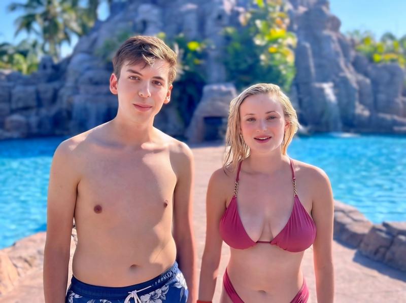 Jordan e Nora, hóspedes vindos da Carolina do Norte, Estados Unidos, aproveitando o complexo aquático)