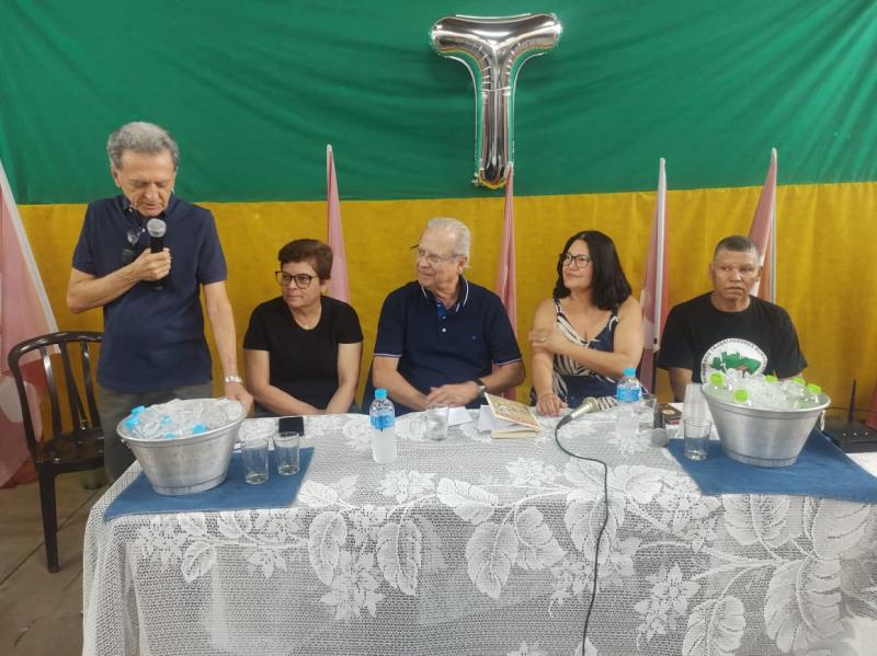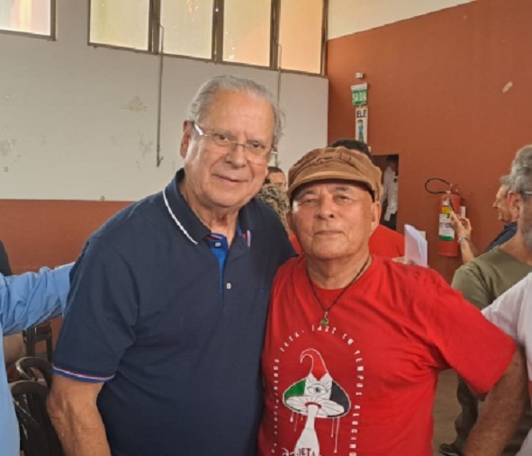 Na visita do ex-ministro e deputado Zé Dirceu, na quinta-feira (12), e em reunião na hora do almoço no clube de campo do Sindicato dos Bancários, a composição de mesa com Adelino Ferreira, Diolinda Alves (assessora da deputada Sâmia Bomfim, do PSOL), o visitante, Sônia Auxiliadora (presidente do PT em Prudente) e Zélito Luz da Silva (coordenador do MST)