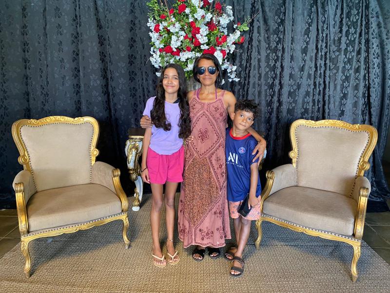 A associada Elaine Santos almoçou com os filhos, Júlia e Felipe