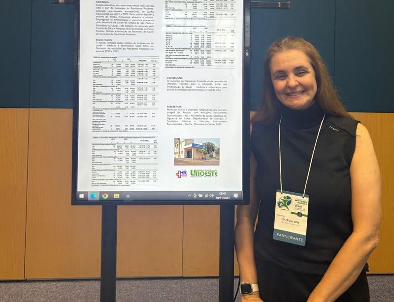 Patrícia Rodrigues Naufal Spir, especialista em Pediatria e Infectologia Infantil, esteve no 22º Congresso Brasileiro de Infectologia Pediátrica e Simpósio Brasileiro de Vacinas, de 8 a 11 de novembro, em Curitiba (PR), onde apresentou o trabalho intitulado “Avaliação dos profissionais de saúde sobre sífilis na gestante, no município de Presidente Prudente – o que mudou?”, realizado por ela em parceria com colegas dos hospitais Estadual e Regional de Presidente Prudente e Unoeste, com apoio da Secretaria de Saúde de Presidente Prudente.