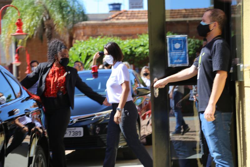 A primeira-dama Michelle Bolsonaro e a ministra Damares Alves estiveram hoje em Presidente Prudente, para oficializar a entrega de cestas básicas para a Apae (Associação de Pais e Amigos dos Excepcionais) e Associação dos Cegos em evento a portas fechadas, no Teatro Municipal Paulo Roberto Lisbôa, no Centro Cultural Matarazzo.