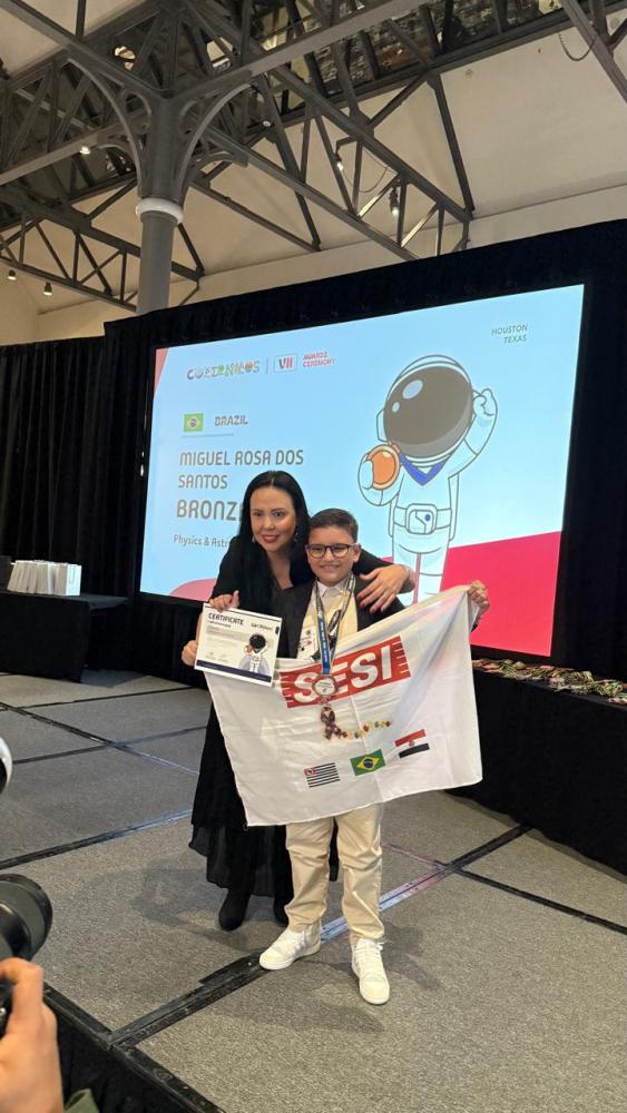 Além do ouro, o estudante também conquistou a medalha de bronze na Copernicus Olympiad Physics & Astronomy, enfrentando um desafio ainda maior. Miguel competiu na Grade 8, categoria destinada a alunos mais velhos e com maior escolaridade formal, demonstrando domínio de conceitos complexos de Física e Astronomia — áreas que despertam seu interesse científico desde cedo.