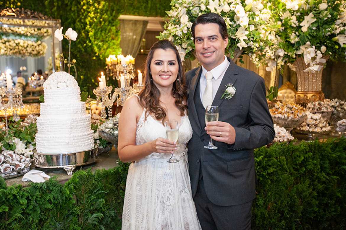 No último dia 7 de abril, o salão de festas do Espaço Toledo serviu de cenário para a celebração matrimonial de Maria Fernanda, médica em Presidente Prudente, filha de Eliezer Pereira do Lago Neto e Ana Luiza Custódio Pereira do Lago, e Marco Henrique, gerente da Global Star, filho de Welinghton Marcondes Cordeiro e Vânia Tereza S.S. Cordeiro. O ritual e a festa foram realizados no mesmo local, sob a condução do cerimonialista Tom Zambrini. O salão foi belissimamente decorado por Don Eventos.