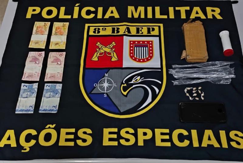 Oficiais constaram que o objeto descartado era uma porção de crack. Alcançado, o indivíduo confessou que comercializava entorpecentes e que possuía mais droga em sua residência, local onde a cadela de faro Ravena, do Canil do 8º Baep, localizou um tablete de maconha, outras pedras de crack, dinheiro e material para embalagem de substâncias ilícitas. Conduzido à Delegacia Seccional, o acusado permaneceu no aguardo de audiência de custódia para posterior transferência ao sistema prisional.