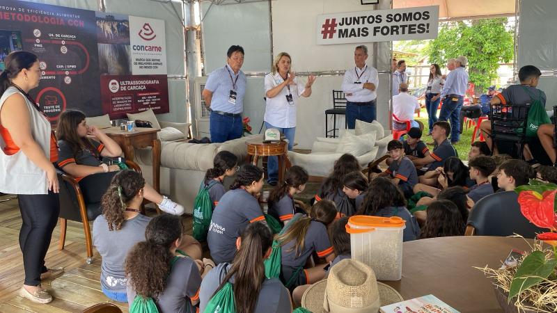 Ao longo da manhã dessa sexta-feira, a Feicorte recebeu cerca de 200 estudantes que visitaram o evento pelo projeto “Vivenciando na prática”, uma das iniciativas da associação De Olho no Material Escolar, que busca aproximar os jovens do agronegócio por meio de atividades educativas e visitas a propriedades rurais e feiras.