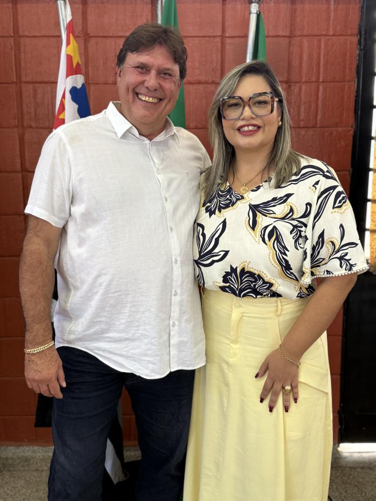 Foto: Ciop - Adailton Menossi, eleito para presidir conselho diretor, ao lado da atual presidente do Ciop, Suelen Mative