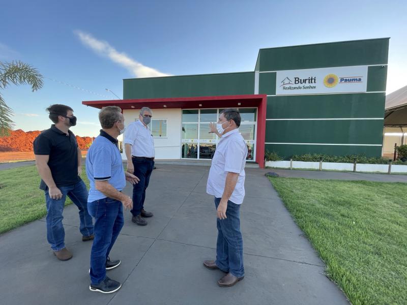 Lúcio Cornachini, diretor da Buriti Empreendimentos, e Tiago Constantino Dicola, diretor da Pauma Empreendimentos, receberam ontem à tarde o prefeito Ed Thomas nas obras do loteamento Parque dos Buritis. Os empresários explicaram ao prefeito que esse é o segundo empreendimento na cidade, que resultou da parceria das duas empresas. O primeiro foi o condomínio Jatobá. O Parque dos Buritis foi lançado em dezembro de 2020, com 1.412 lotes, na Rodovia Júlio Budiski, e está totalmente vendido. Os empresários prometeram entregar o loteamento totalmente concluído até outubro, e informaram ao prefeito que já tem engatilhados outros sete loteamentos para lançar na cidade, um deles em parceria com o empresário Simão Jatene, numa área dele perto do Damha 4, e outro em parceria com o advogado Mauro César Martins de Souza, que tem uma área perto do Jardim Humberto Salvador. “São grandes empresários e quero agradecer pelos investimentos em nossa cidade, gerando recursos que são revertidos para educação, saúde e infraestrutura de Presidente Prudente”, disse o prefeito Ed Thomas.