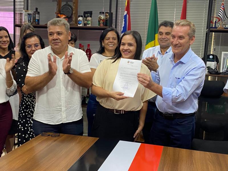 Com 29 anos de atuação no magistério e servidora municipal em Presidente Prudente desde 15 de fevereiro de 1993, Sirlei Aparecida Gomes dos Santos Oliveira assumiu a Seduc (Secretaria Municipal de Educação) na manhã desta segunda-feira, por meio do decreto nº 33.037, assinado pelo prefeito Ed Thomas (PSB) e publicado em edição extraordinária do Diário Oficial na sexta-feira. A cerimônia da transferência de posse ocorreu no gabinete do Paço Municipal, com a presença de Joana D’arc Patrício do Nascimento, que deixou a cadeira e retorna às funções do Legislativo.