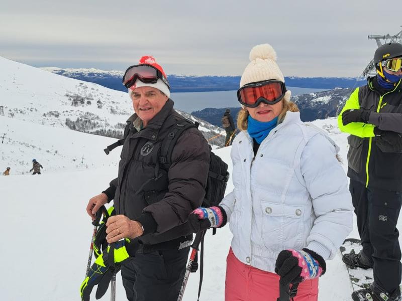 Dorisa Fontolan Medeiros e Marcos Medeiros escolheram Bariloche, na Argentina, como destino para desfrutar sua temporada de férias. Com as montanhas cobertas de neve, Dorisa e Marcos encontraram condições perfeitas para explorar uma vasta área esquiável. Bariloche é conhecida por suas excelentes pistas de esqui, que variam em níveis de dificuldade. Tanto para iniciantes quanto para esquiadores experientes, a região oferece opções desafiadoras e estimulantes, garantindo uma experiência incrível para os amantes do esqui. Dorisa e Marcos também tiveram a oportunidade de desfrutar das belas paisagens naturais ao redor. A cidade oferece vistas deslumbrantes dos lagos, bosques e montanhas.