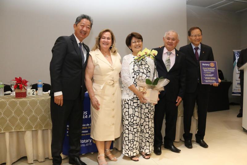 Destaque da noite foi a integração oficial do médico Dr. Perícles Otani e de sua esposa, Elisa Otani, ao quadro social. O casal passou a fazer parte tanto do Rotary Club quanto da Casa da Amizade, instituição ligada ao grupo. A recepção foi realizada pelo casal presidente para o próximo ano rotário (2025-2026), Sérgio Itio Turuta e Lucimar Turuta, que comandaram os trabalhos da noite especial.