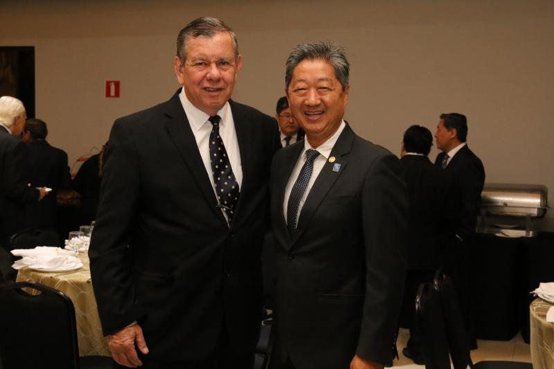 O novo integrante do clube, o médico Péricles Otani, com o padrinho de Rotary, Oswaldo Miyasaki