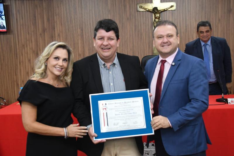 A entrega da honraria ocorreu na noite de sexta-feira (31), na Câmara Municipal, com as presenças de vereadores, familiares e amigos. O homenageado esteve acompanhado da esposa Lizandra e dos filhos Guilherme e Ana Beatriz.