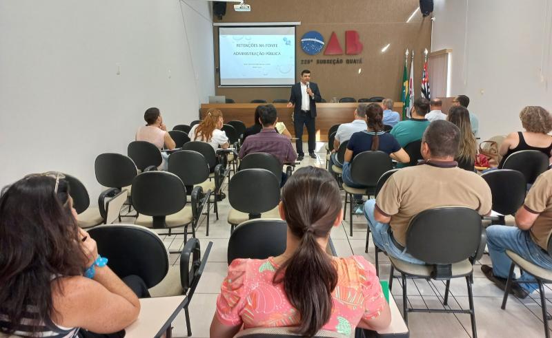 A Prefeitura de Quatá, com o objetivo de oferecer especialização e conhecimento aos servidores municipais, promoveu um treinamento sobre “Retenções na Fonte” para funcionários que atuam na área de contabilidade, administração, finanças, licitação, compras, jurídico e controle interno.